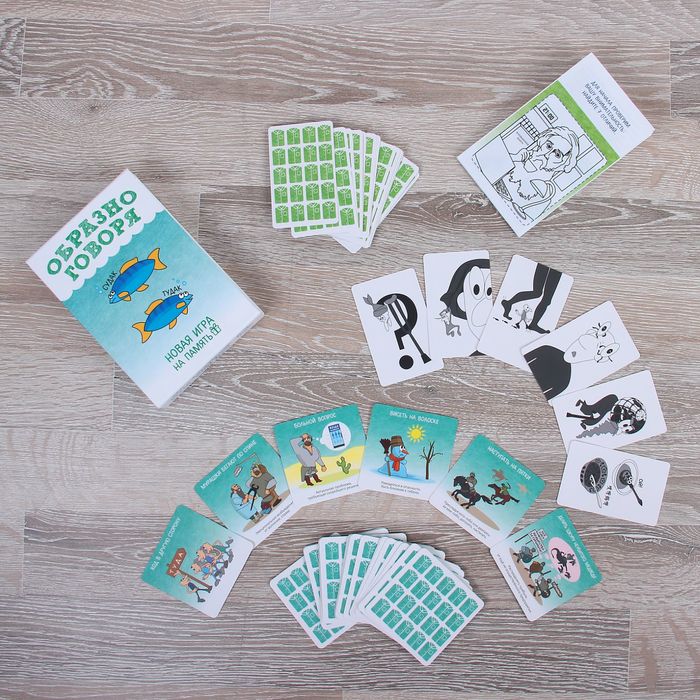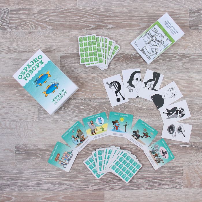 «Образно говоря» — смешная настольная игра для развития памяти и внимания. В ней вам предстоит находить пары карт с одинаковым смыслом, но различными иллюстрациями. Некоторые будут изображать фразеологизмы в прямом смысле, а остальные — в переносном. После нескольких раундов вы сможете добавить 4 особые карточки, чтобы разнообразить процесс и сделать его ещё более комичным и абсурдным.