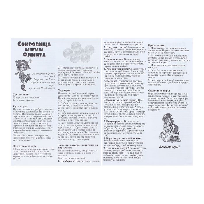 Невозможно представить нашу жизнь без праздников! Мы всегда ждём их и предвкушаем, обдумываем, как проведём памятный день, тщательно выбираем подарки и аксессуары, ведь именно они создают и поддерживают торжественный настрой. Настольная игра «Сокровища капитана Флинта» — это отличный выбор, который привнесёт атмосферу праздника в ваш дом!