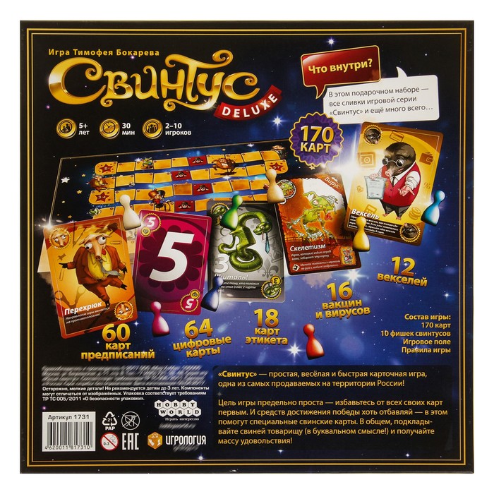 Невозможно представить нашу жизнь без праздников! Мы всегда ждём их и предвкушаем, обдумываем, как проведём памятный день, тщательно выбираем подарки и аксессуары, ведь именно они создают и поддерживают торжественный настрой. Настольная игра "Свинтус Делюкс" — это отличный выбор, который привнесёт атмосферу праздника в ваш дом!