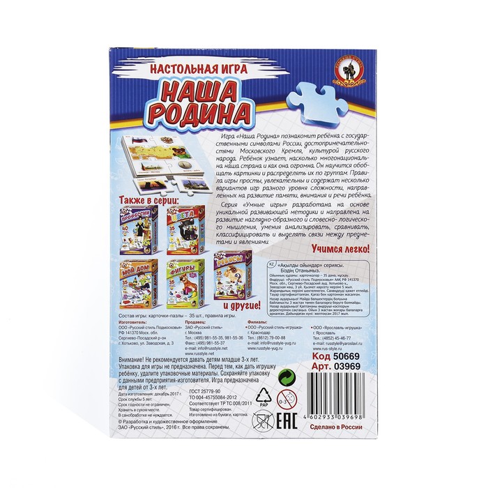 Настольная игра "Умные игры. Наша Родина"