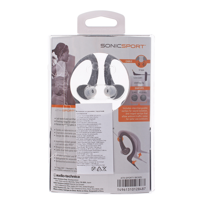 Вакуумные наушники AUDIO-TECHNICA ATH-SPORT1 подходят для спортсменов и людей, которые ведут активный образ жизни.