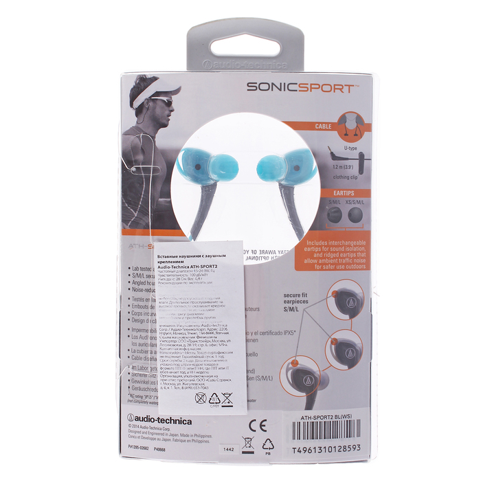 Вакуумные наушники AUDIO-TECHNICA ATH-SPORT2 подходят для спортсменов и людей, которые ведут активный образ жизни.