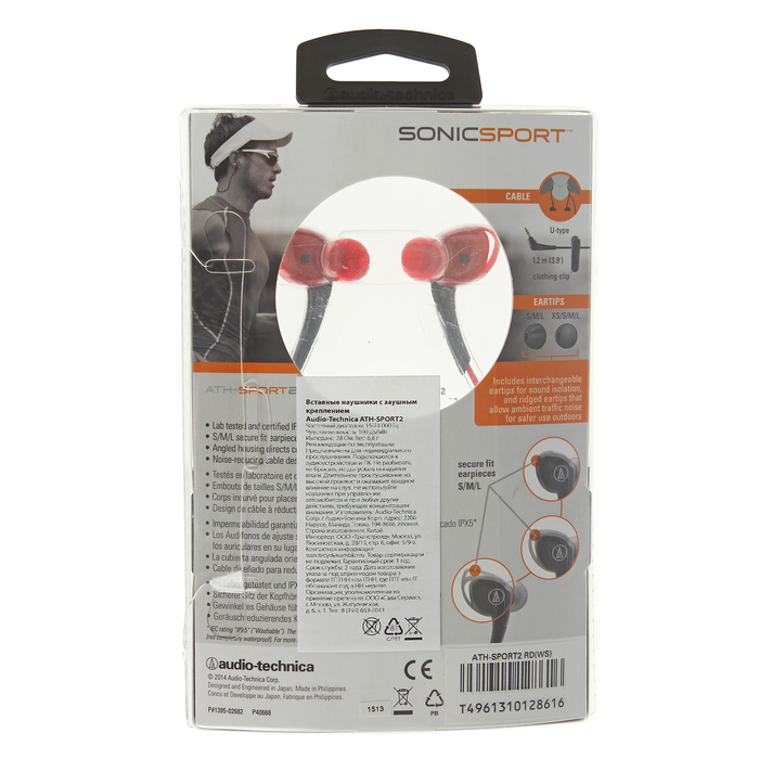 Вакуумные наушники AUDIO-TECHNICA ATH-SPORT2 подходят для спортсменов и людей, которые ведут активный образ жизни.