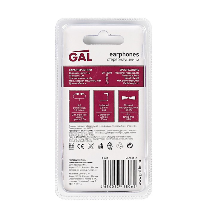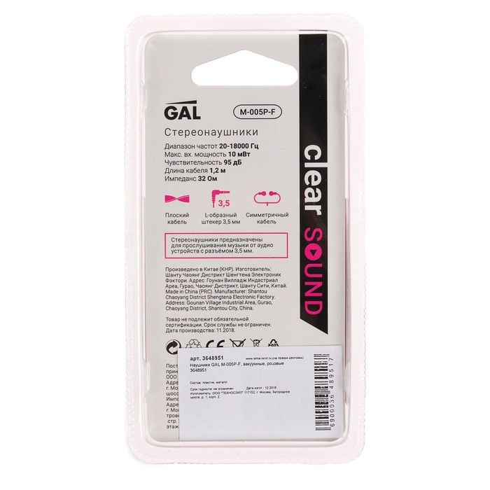 Наушники GAL M-005P-F, вакуумные, розовые позволят вам насладиться любимой музыкой где угодно: по дороге на учёбу, на работу, в транспорте и даже в метро.