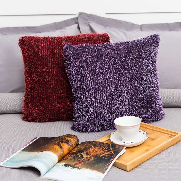 Наволочка пушистая Стиль 40*40 см лаванда-чёрный, 100% п/э
