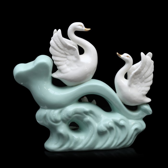 Нэцкэ керамика "Лебеди на жезле Жуи" 28х30,5х8,5 см