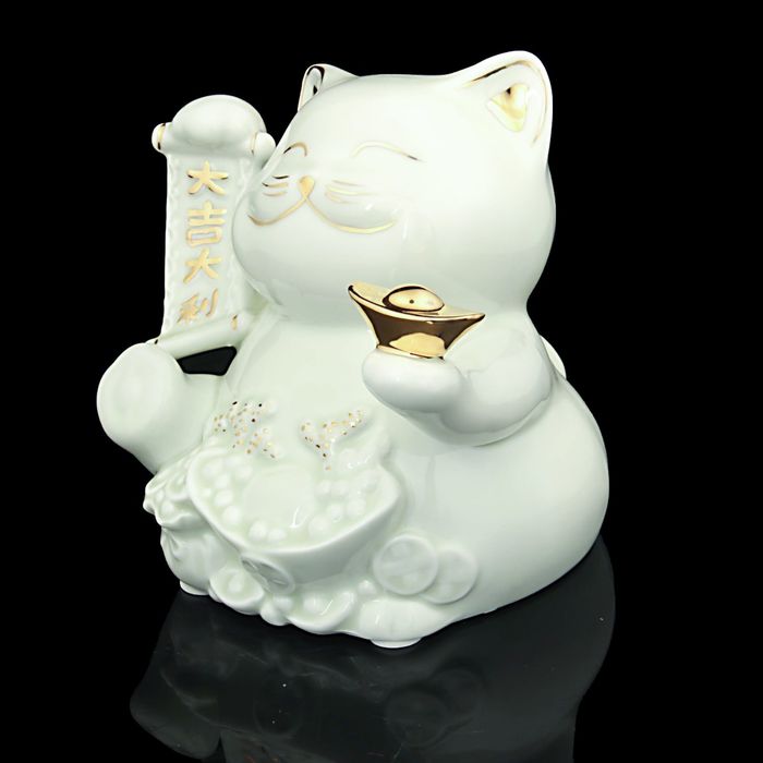 Нэцкэ «Кот с пожеланием счастья и благополучия»