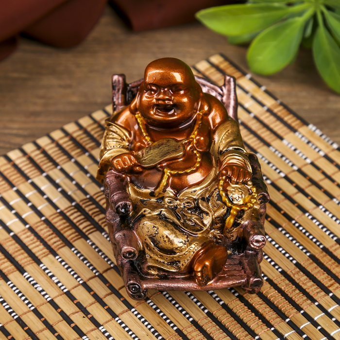 Нэцке полистоун бронза "Хотей в кресле-качалке" 6,5х10х6,4 см