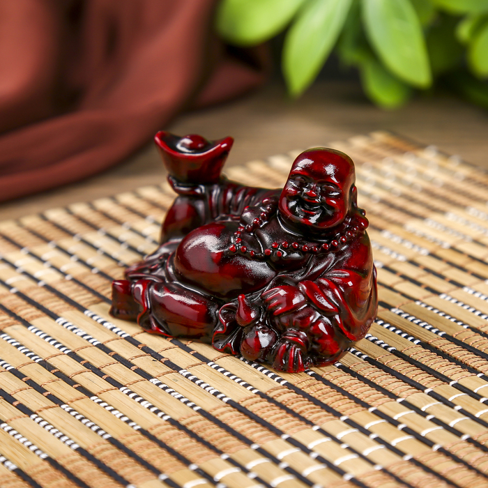 Нэцке полистоун "Хотей лежит в руках слиток золота" тёмно-красный 4,5х7,3х4,5 см