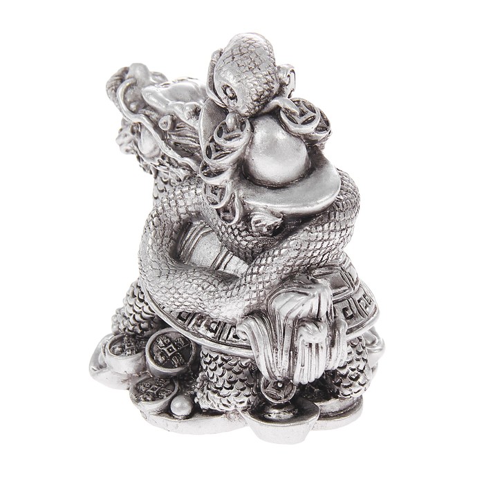 Нэцкэ полистоун серебро "Дракон и змея смонетами и слитками золота" 9х9х5,5 см