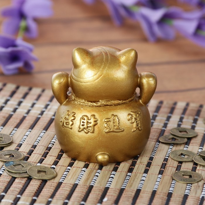 Нэцкэ полистоун золото "Манэки-нэко" 6х5х4,5 см