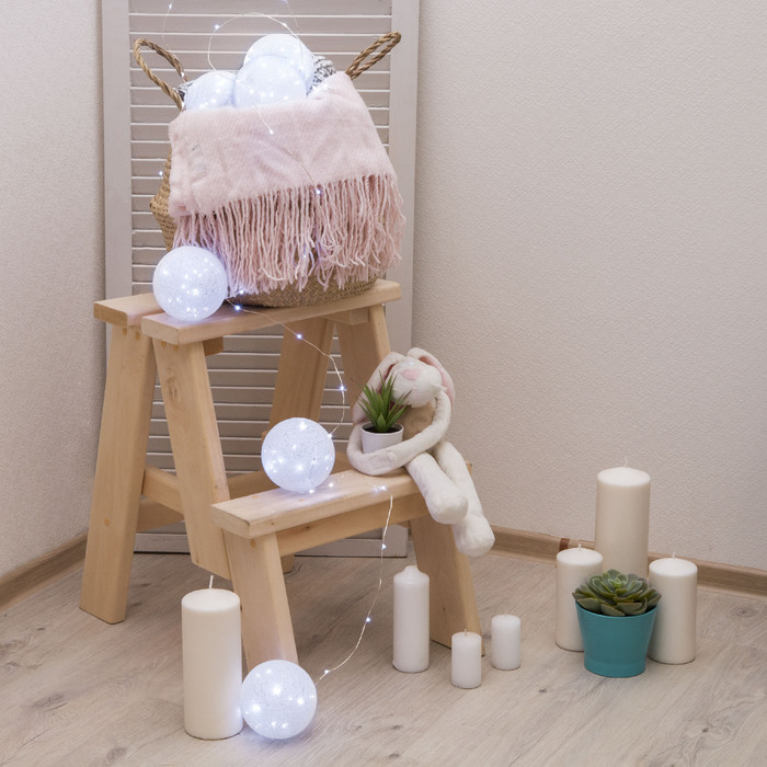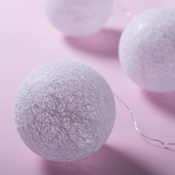 НИТЬ "Шары плетеные" 1,8 м, 6 х10 см, 100 LED-12V, нить белая, адаптер в компл. БЕЛЫЙ
