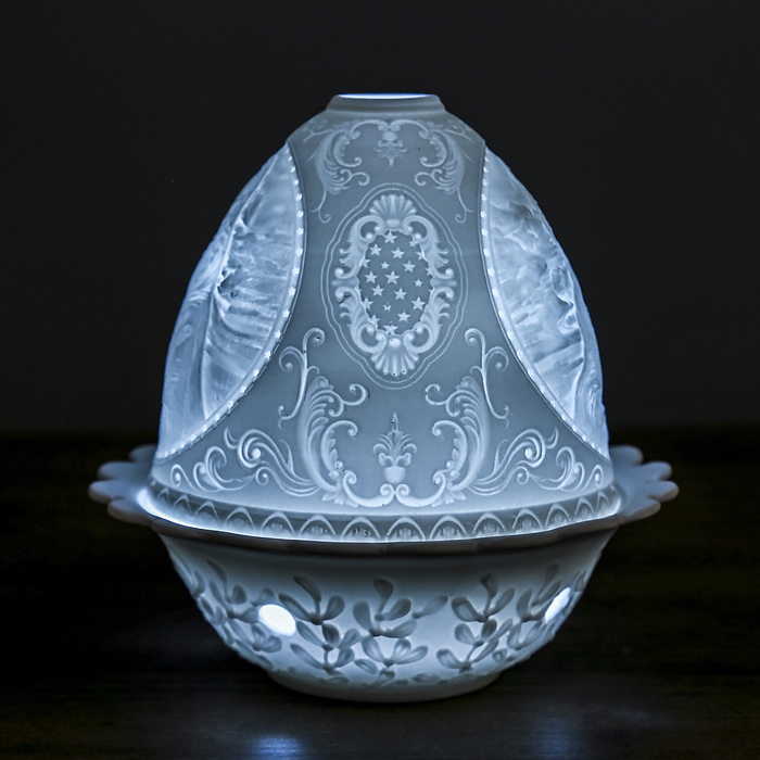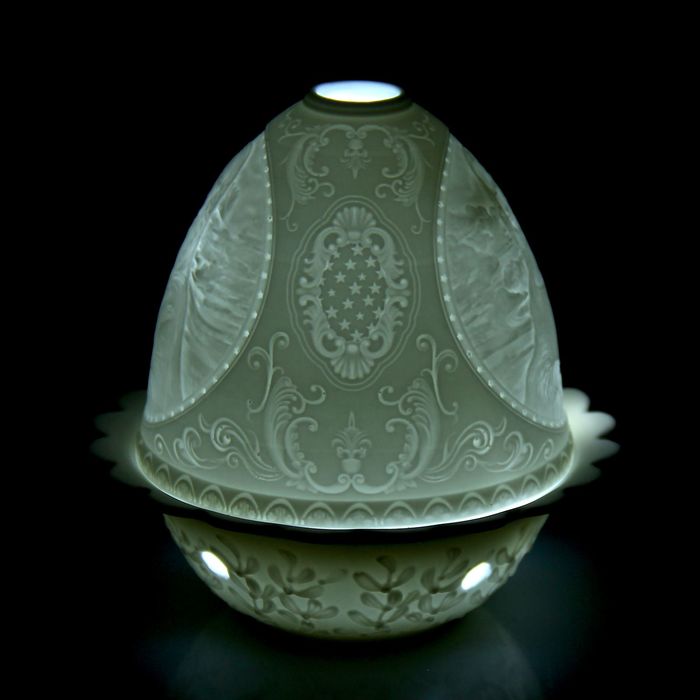 Необычная идея воплощена в этом предмете интерьера: загорается свет, и перед взором открывается прекрасный вид на орнамент, который словно вытиснен на белоснежном шатре. Ночник "Мадонна" — истинное произведение искусства.