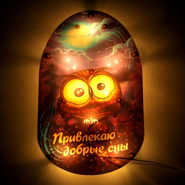 Ночник настенный "Привлекаю добрые сны" светит достаточно ярко, чтобы мама могла спокойно сделать всё необходимое, и в то же время не тревожит детский сон. Он обеспечивает равномерное приглушённое освещение, под которое так приятно и спокойно засыпать малышу. Прибор включается в розетку, но практически не нагревается во время использования. Благодаря яркому дизайну станет прекрасным дополнением интерьера детской комнаты.