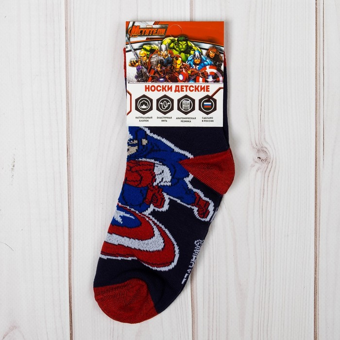 Носки детские Капитан Америка, Мстители 16-18 см, 4-6 лет., 80% хл.,17% п/э, 3% эл.