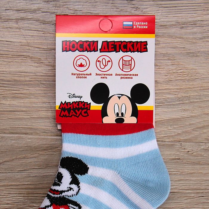 Носки детские "Микки Маус", полоска 12-14 см, 1-2 года, 80% хлопок, 17% полиамид, 3% эластан