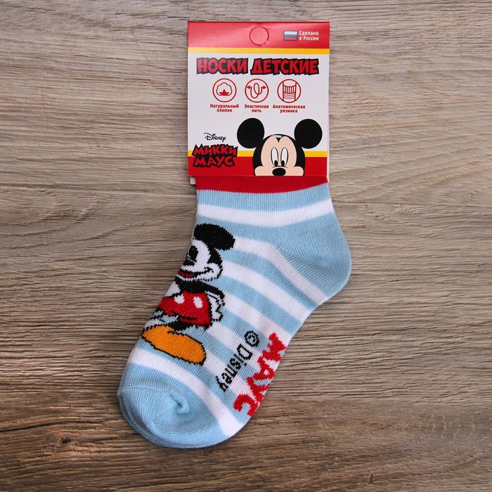 Носки детские "Микки Маус" полоска 18-20 см, 7-9 лет, 80% хл.,17% п/а, 3% эл.