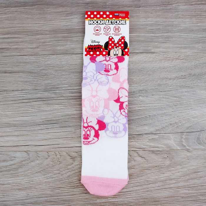Носки детские, Минни Маус, персик, 18-20 см, 7-9 лет, 80% хлопок, 17% полиамид, 3% эластан