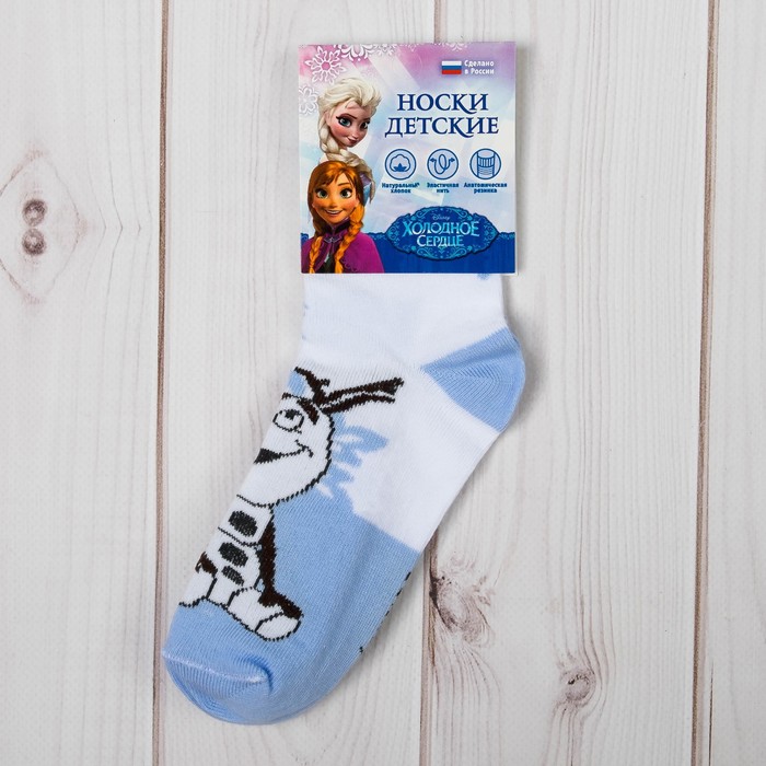 Носки детские "Олаф. Снег", Холодное сердце, 22-24 см, 12-14 лет, 80% хлопок, 17% полиамид, 3% эластан