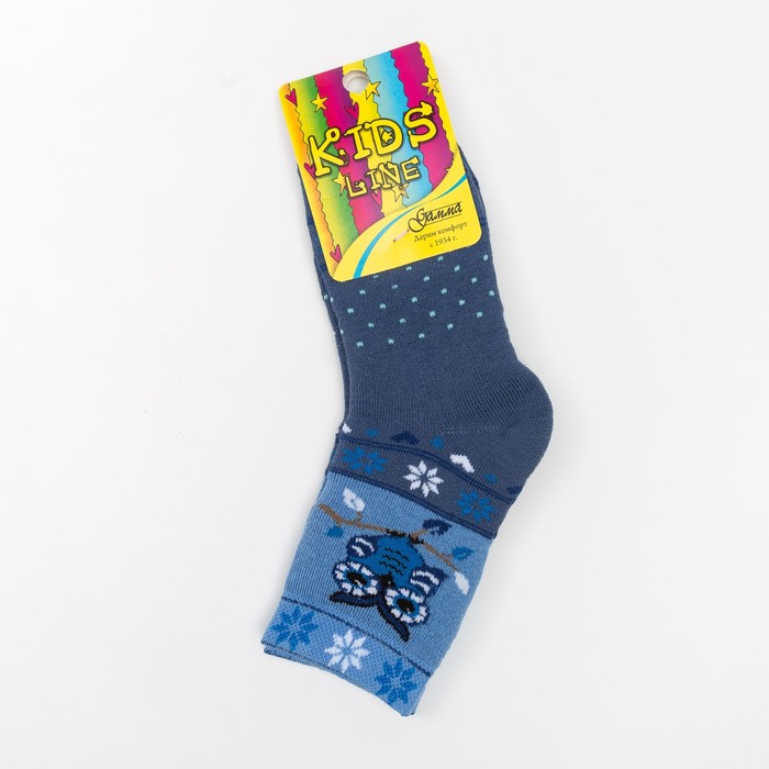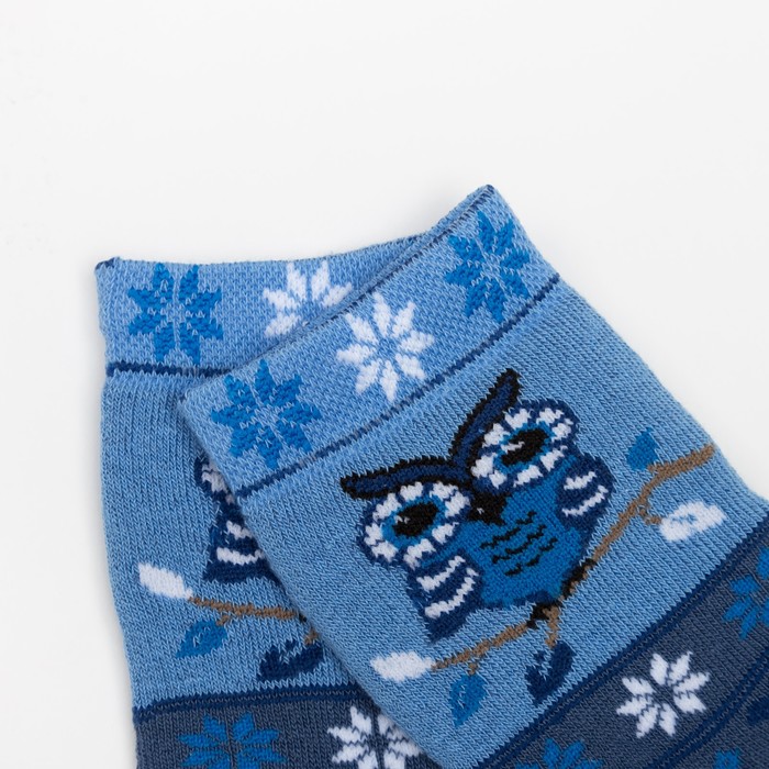 Носки детские плюшевые "Сова" цвет деним, размер 16-18