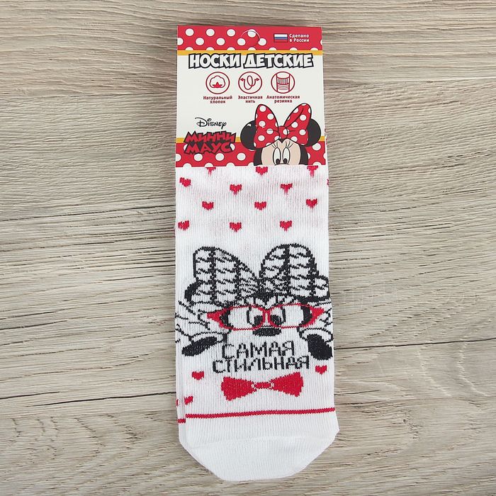 Носки детские "Самая стильная", Минни Маус, 22-24 см, 12-14 лет, 80% хлопок, 17% полиамид, 3% эластан