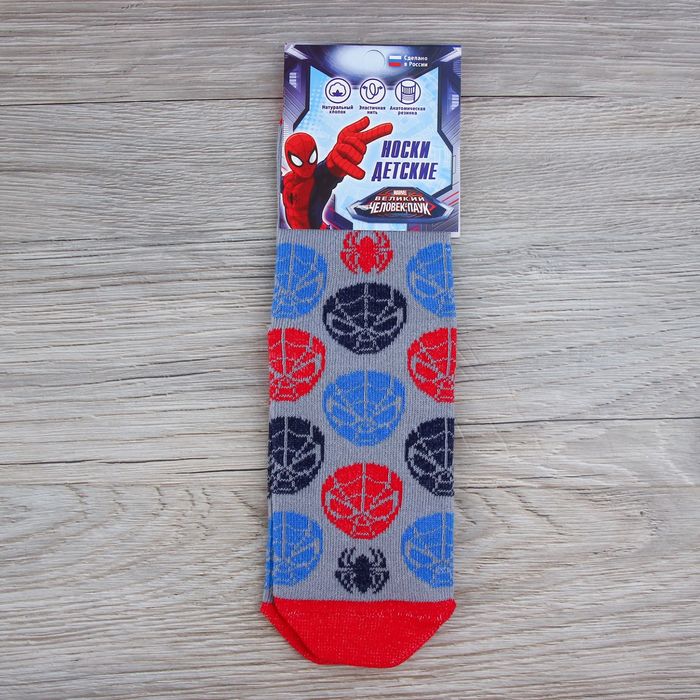 Носки детские "Самый крутой", Человек-паук, 18-20 см, 7-9 лет, 80% хлопок, 17% полиамид, 3% эластан