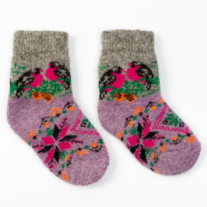 Носки детские шерстяные «Снегири», цвет сиреневый, размер 18
