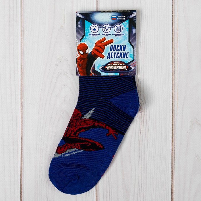 Носки детские "Великий Человек-паук", 20-22 см, 10-12 лет, 80% хлопок, 17% полиамид, 3% эластан