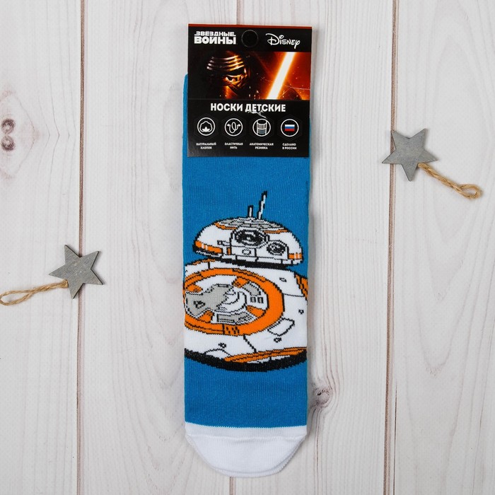 Носки детские "ВВ-8", Звёздные войны, 20-22 см, 10-12 лет, 80% хлопок, 17% полиамид, 3% эластан