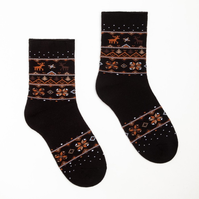 Носки женские махровые "Орнамент", цвет чёрный, размер 23-25