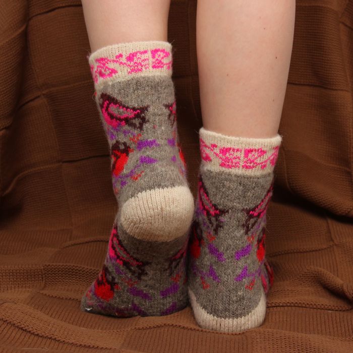 Носки женские шерстяные "Снегири", цвет серый, размер 25