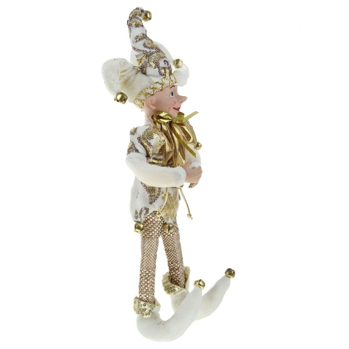 Новогоднее украшение "Шут" эльф в белом камзоле