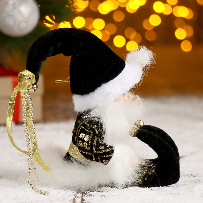Новогоднее украшение "Шут" в чёрном камзоле с опушкой