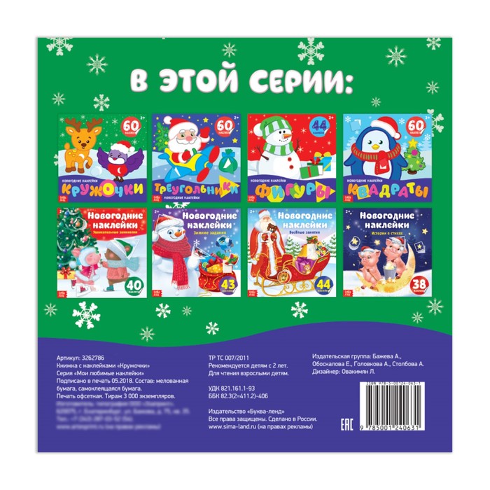Новогодние наклейки «Кружочки», 12 страниц — отличный вариант для тех родителей, которые привыкли окружать своего малыша только лучшими и качественными вещами. За такой книжкой ваш ребёнок проведёт время с пользой и удовольствием, узнает много нового и интересного.