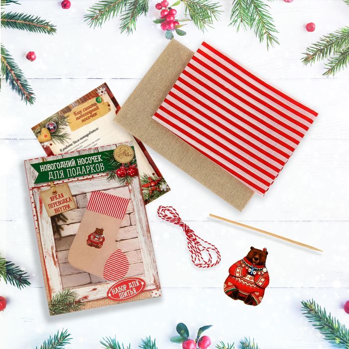 Новогодние носки для подарков «Снежные истории», набор для шитья, 10,5 × 16,5 × 5 см