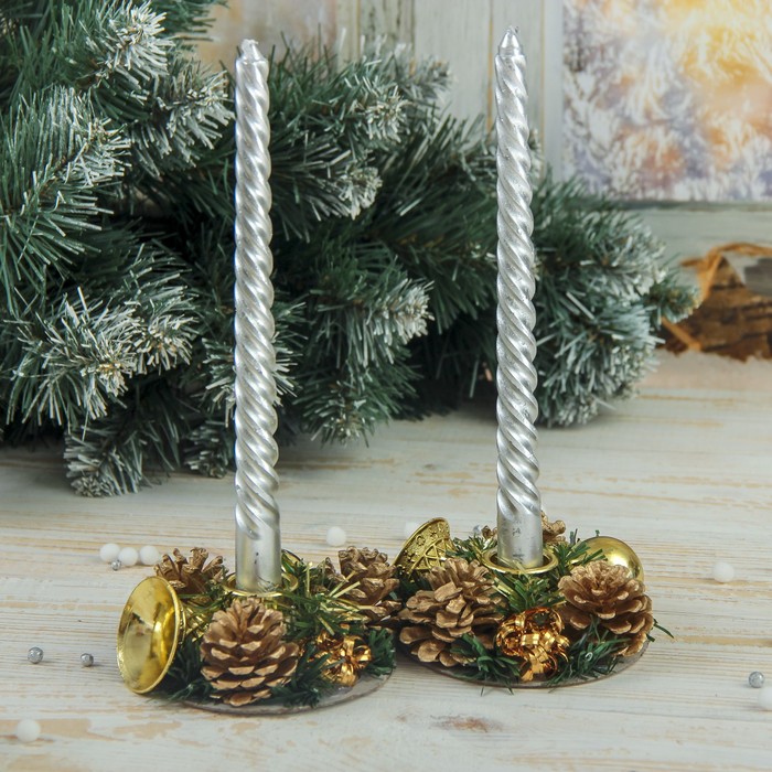 Новогодние свечи с подсвечником "Мерцание" (набор 4 шт) 5*15*21 см Уценка