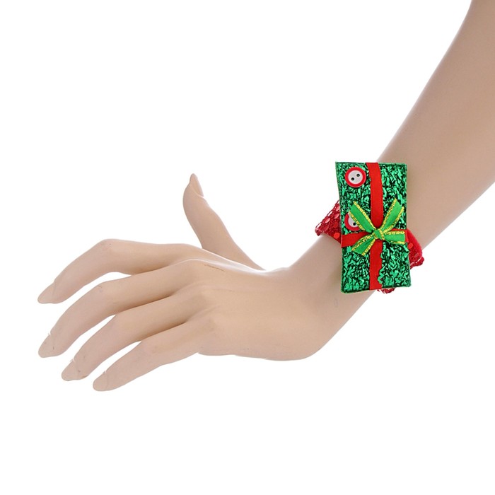 Новогодний браслет "Подарок с пуговками", блестящий, цвета МИКС