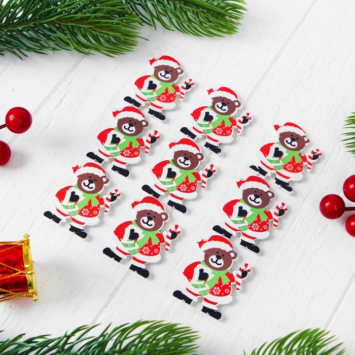 Новогодний декор на магните "Новогодний мишка", набор 9 шт.
