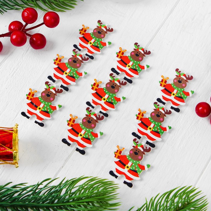Новогодний декор на магните "Олень с подарочком", набор 9 шт.