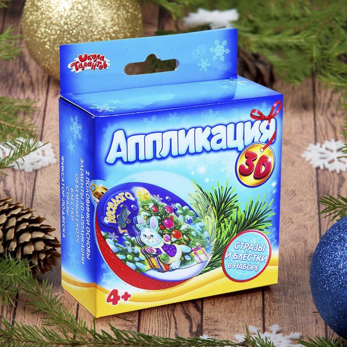 Новогодний шар "Милая зайка" c 3D-аппликацией