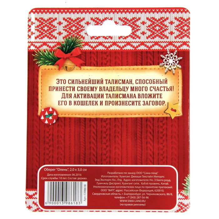 Новогодний талисман "Счастья и гармонии в дом" — чудесный сувенир, который станет отличным подарком для друга или коллеги! Такой оберег поместится в кошелёк или сумочку и будет приносить счастье и достаток все 365 дней.