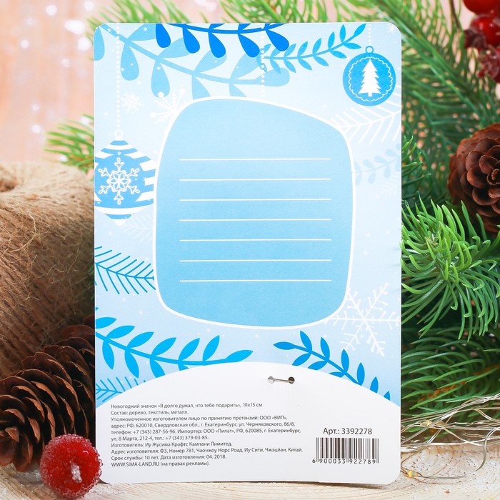 Новогодний значок с объёмным элементом "Я долго думал, что тебе подарить"