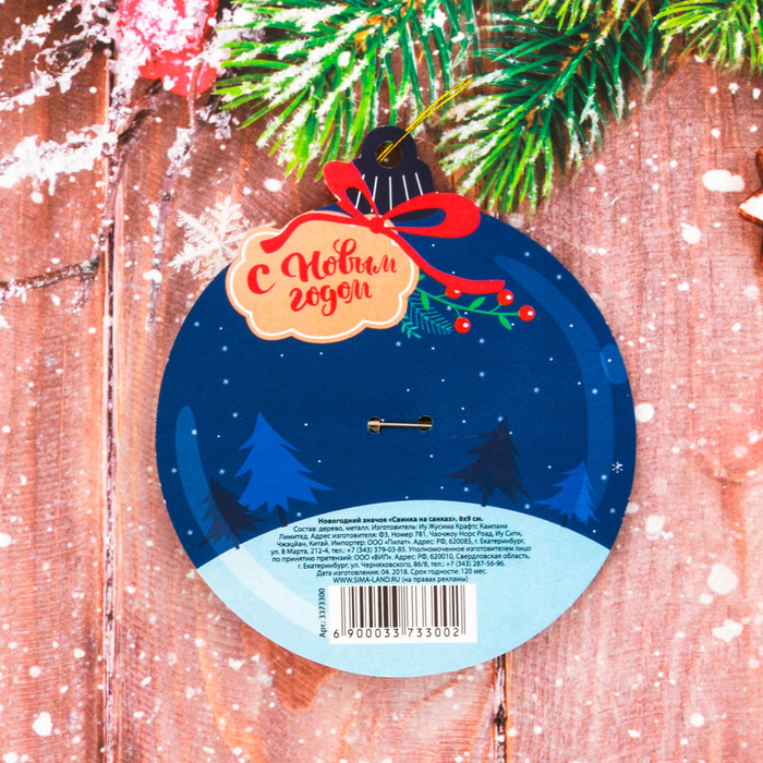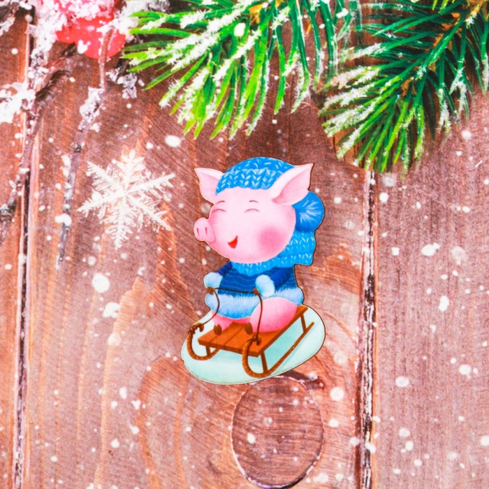 Ни один стиляга не будет выглядеть современно без искусно подобранных украшений, которые завершат его образ! Бижутерия — это современная недорогая альтернатива изделиям из золота и прочих драгоценных металлов. Новогодний значок "Свинка на санках" — это то, что добавит вам шарма!