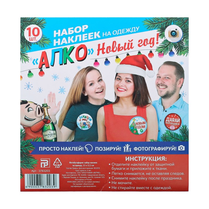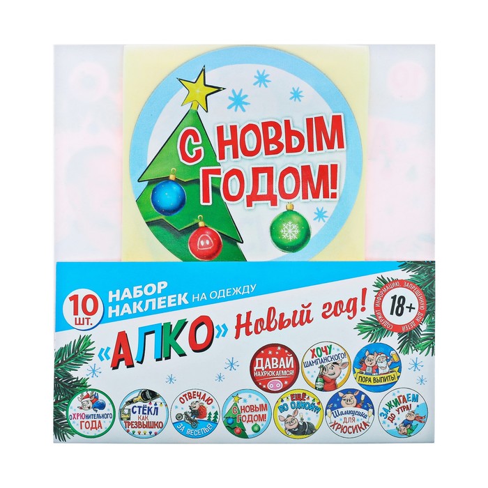 Новогодняя фотобутафория набор наклеек на одежду "Алко Новый год"