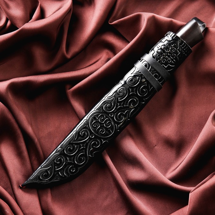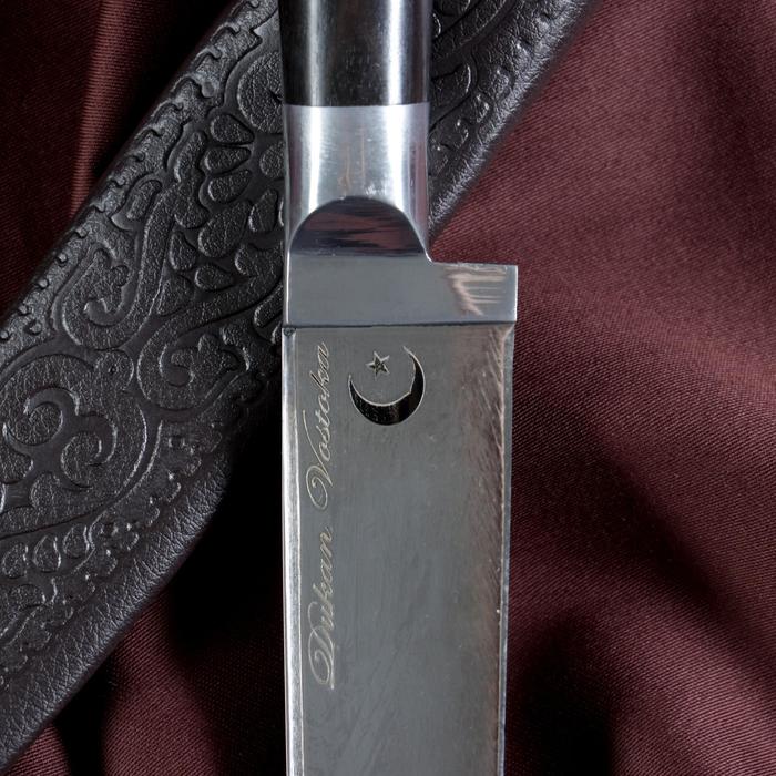 Нож Корд Куруш малый, чёрная рукоять из граба (сухма), гарда из олова с гравировкой