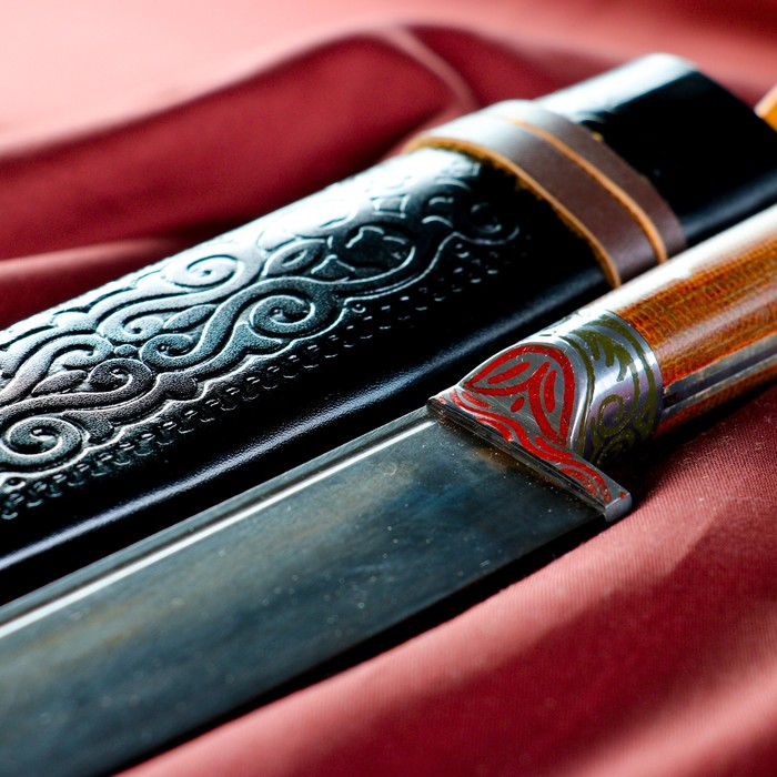 Нож Пчак Шархон средний, рукоять из текстолита (ёрма), гарда из олова с гравировкой