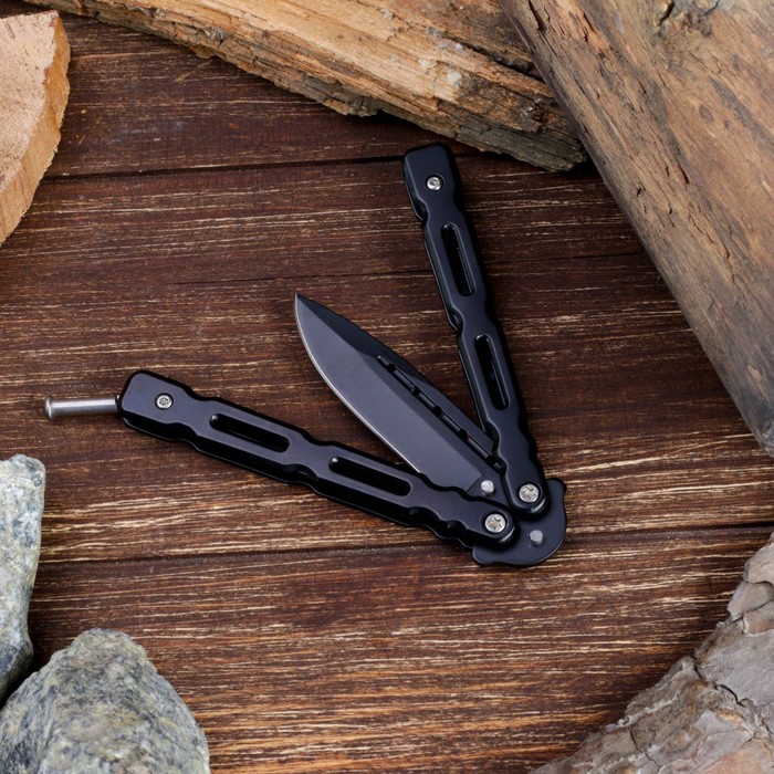 Нож складной неавтоматический бабочка, в чехле, рукоять черная с отверстиями не является холодным оружием. Прибор имеет простую конструкцию и быстро открывается одной рукой. Это даёт ему преимущества в экстремальных условиях.