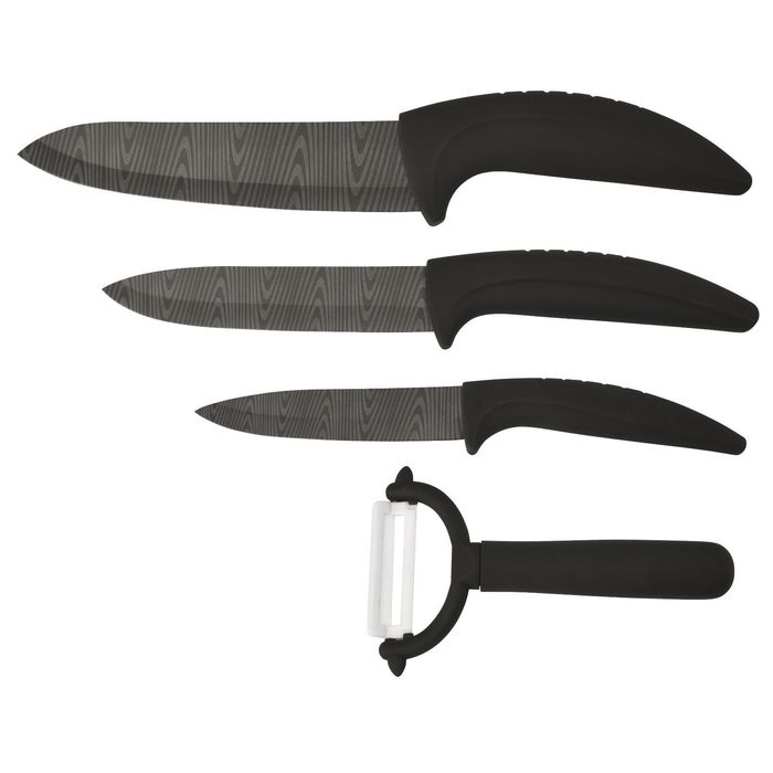 От качества посуды зависит не только вкус еды, но и здоровье человека. Ножи Bohmann 5 предметов,15 см, 12,5см, 10см, керамическое черное лезвие с дамасским узором — товар, соответствующий российским стандартам качества. Любой хозяйке будет приятно держать его в руках. С нашей посудой и кухонной утварью приготовление еды и сервировка стола превратятся в настоящий праздник.