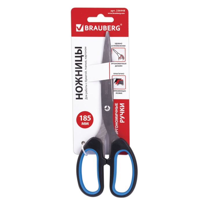 Ножницы BRAUBERG "Classic+" 18,5см, с резин.вставками, черно-синий 236448 станут прекрасным бытовым помощником для вас и ваших детей!