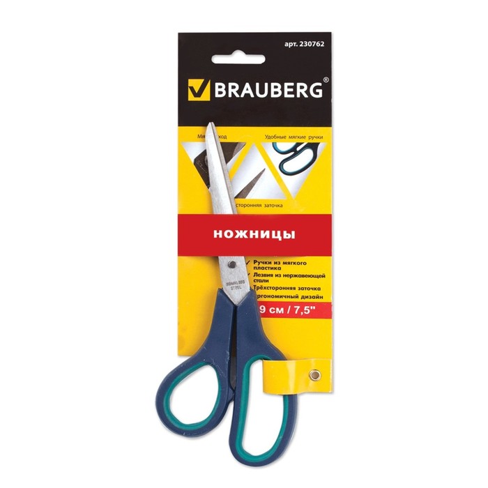 Ножницы BRAUBERG "Soft Grip" 19см, рез.встав, 3-х сторон.заточка, серо-зел 230762 станут прекрасным бытовым помощником для вас и ваших детей!